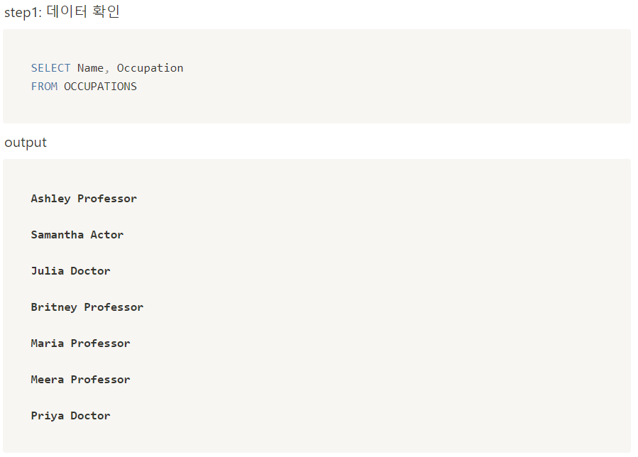 우선 1번 쿼리를 짜기 전 occupations table에 대해 살펴보았다.